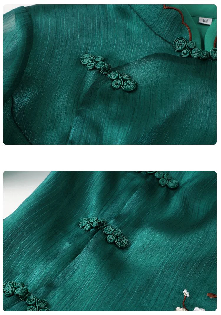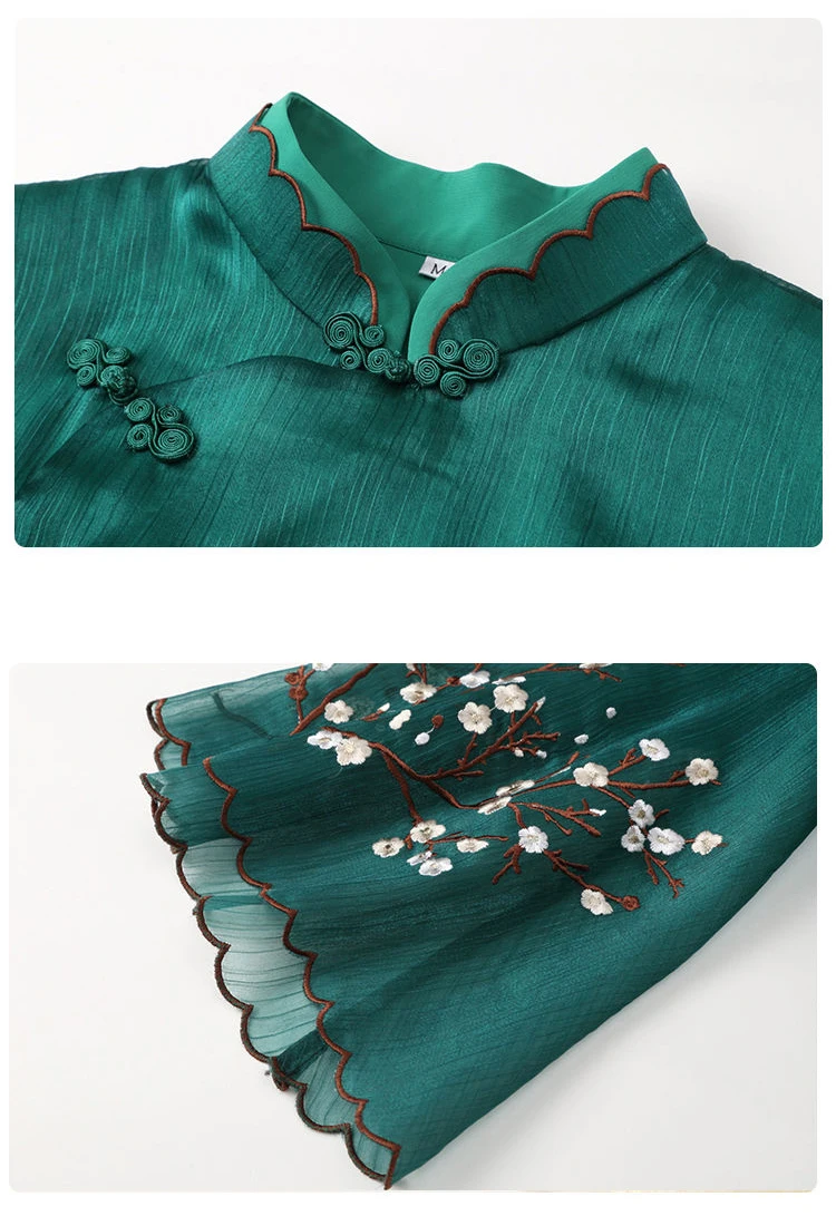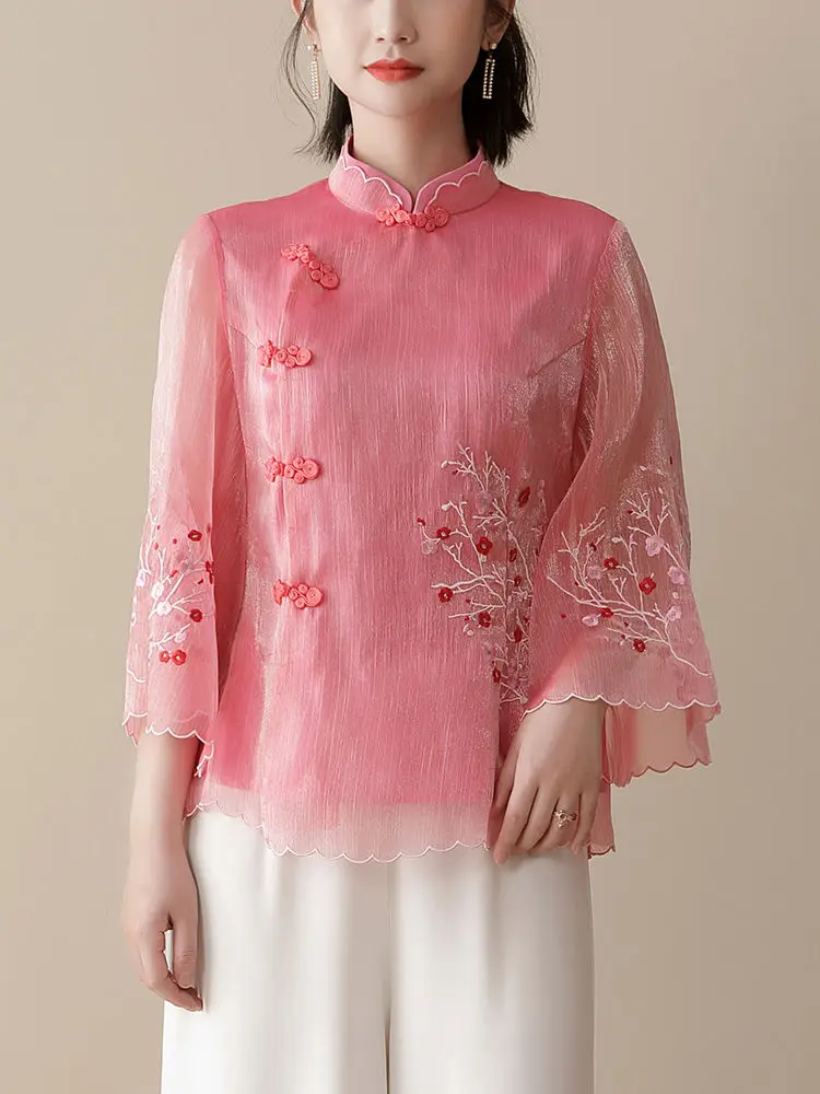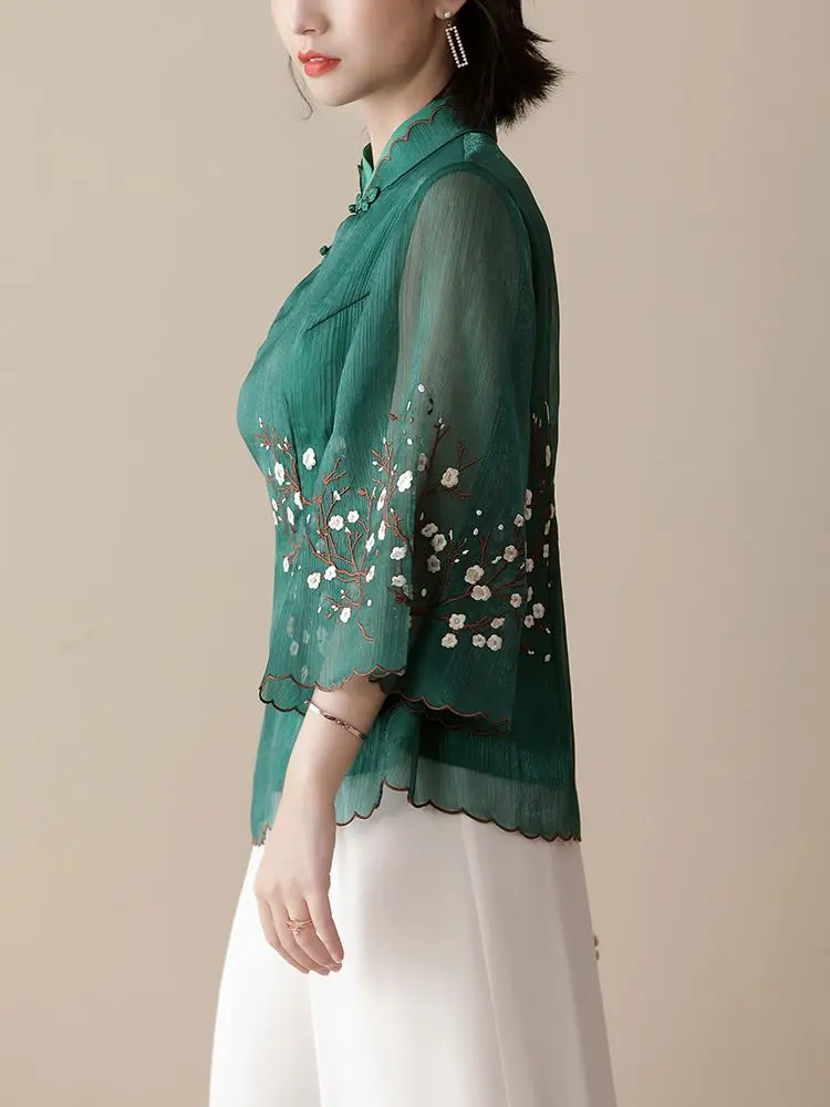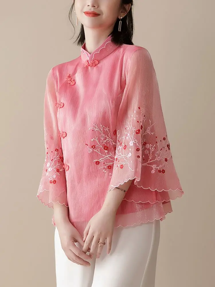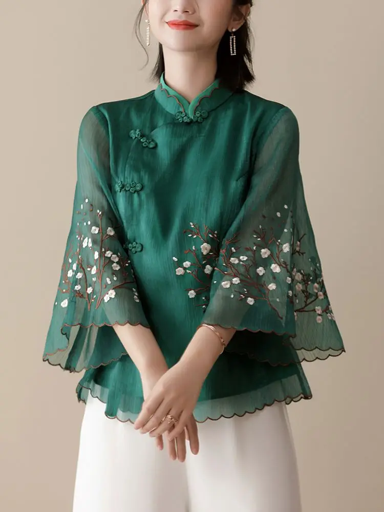 Chinese Style Embroidered Blouse Modified Cheongsam Stand Collar Bat Sleeve Loose Top Vintage Temperament Women's Clothing